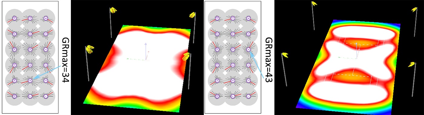 Во-первых, чем меньше, тем лучше? Да, в целом, чем ниже соответствующее значение, тем лучше. Для показателя U нет исключений, но для показателей задней подсветки и бликов может потребоваться индивидуальный подход при моделировании освещения. Например, в дорожном освещении для соответствия требованиям Rei необходим определенный уровень задней подсветки, чтобы адекватно осветить обе стороны дороги. Это позволяет водителям четко видеть пешеходов или животных по обеим сторонам, предотвращая несчастные случаи, вызванные их внезапным появлением. Аналогично, для максимального охвата более длинных или широких участков дороги от одного фонарного столба может потребоваться несколько более высокое значение прямого света в FH или даже FVH. Это обеспечивает равномерное освещение (Что такое равномерность освещения и как ее улучшить?) на разных полосах движения, предотвращая появление «зебр» или темных пятен. Хотя в таких случаях значение G может быть повышено, ZGSM утверждает, что конечное освещение (или моделирование освещения) Ti все еще может соответствовать проектным требованиям. Если светильникам требуется более низкий показатель задней подсветки, ZGSM предлагает соответствующие решения. Как показано на диаграмме в левом нижнем углу, показатель B изначально равен B2; однако при установке специализированных линз показатель B повышается до B1.