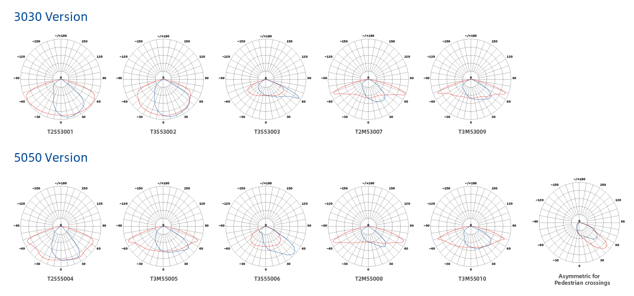 Угол луча Type II, Type III, Асимметричные для пешеходных переходов